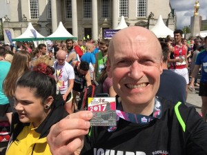 The end of the Leeds Half is deceptive to the uninitiated, you see the start gantry ahead and if you don’t know, you might assume its also the finish. What you then realise is that it isn’t and you have to turn left into a 200m finishing straight to a finish line that seems an infinite distance away. I looked at my watch when I turned into the finish and I saw I had a minute left to achieve my sub 1:55. Of course I knew I could do this but this didn’t stop that inner tension so I focussed and “sped” down to the finish line. Final time 1:54:24.